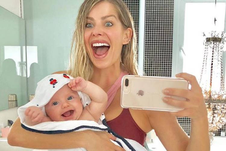 “Bom dia com alegria! Qual mamãe também se identifica com as caras e bocas que fazemos para alegrar nossos filhos ?! Por aqui o que rola é muita agitação logo de manhã! @enricobacchioficial acorda com pique total e também adora tomar banho!”, escreveu a famosa na legenda da publicação.