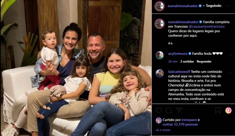 Logo os seguidores elogiaram. “Família linda ❤❤” escreveu o ator Ary Fontoura. “Rapaz, que família linda… Homem das antigas… 4 filhos!”, disse um fã. “Nossa sua filha mais velha tem o seu sorriso, família é tudo na vida”, elogiou outra. “Linda demais sua Família Malvino❤❤”, escreveu mais uma.