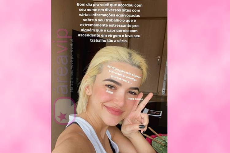 A própria Manu Gavassi, por sua vez, resolveu recorrer em sua conta oficial do Instagram e se manifestou sobre o assunto na manhã desta segunda-feira (26). “Bom dia pra você que acordou com seu nome em diversos sites com várias informações equivocadas sobre o seu trabalho, o que é extremamente estressante pra alguém que é capricórnio com ascendente em virgem e leva seu trabalho tão a sério”, iniciou.