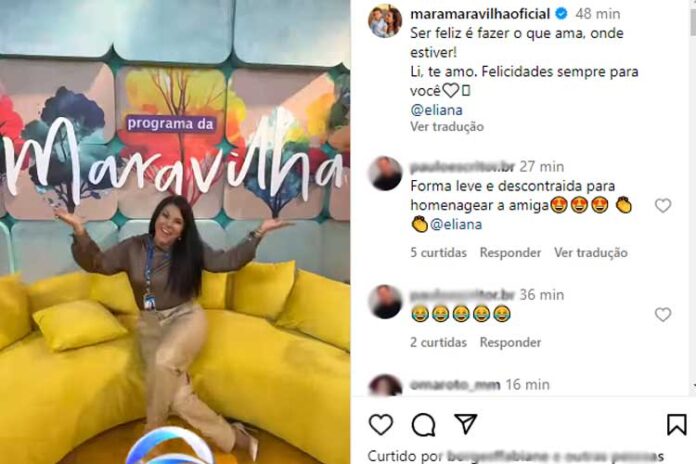 Mara Maravilha aproveitou a oportunidade para imitar a colega, reproduzindo o vídeo em que Eliana aparece pegando seu novo crachá. Na legenda, ela destaca que o mais importante é se sentir feliz onde estiver, enviando um recado para a famosa.