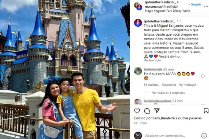 Nos comentários, vários seguidores ficaram emocionados com a mensagem. “Ele é a sua cara, Mara”, disse uma seguidora falando sobre a semelhança do garoto com a mãe. “O Benjamin tem a semelhança incrível da Mara com o Gabriel. Coisas de Deus mesmo”, comentou outro.