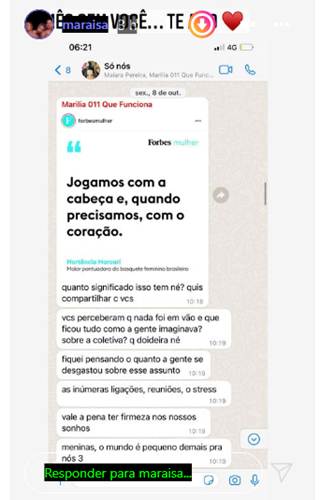 Na postagem, Marília fala sobre a conexão com Maiara e Maraisa e sobre problemas que haviam tido na ocasião com o trabalho. “Meninas, o mundo é pequeno demais para nós três”, chegou a dizer, ao final da mensagem.