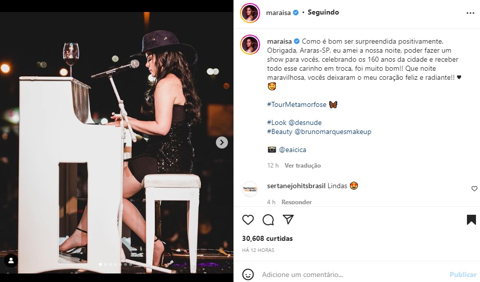 Além de compartilhar essas fotos mais do que especiais, Maraisa também acabou fazendo uma confissão sobre o seu último show. Desse modo, enfatizou que o amor dos seus fãs sempre a enche de muita alegria.