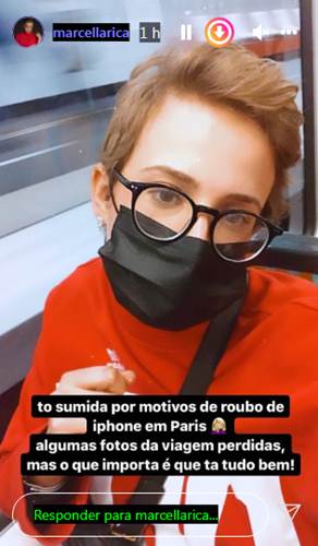 Em seu perfil no Instagram, ela publicou nos stories sobre o ocorrido. “Estou sumida por motivos de roubo de Iphone em Paris. Algumas fotos da viagem perdidas, mas o que importa é que está tudo bem”, disse ela, sem dar mais detalhes do crime.