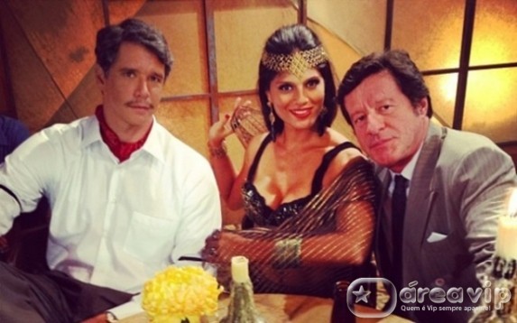 Márcio postou em seu Twitter uma foto em que aparece usando um bigode. “Eu, Gisele Motta e o grande Joaquim de Almeida no set de filmagem”, escreveu o ator.