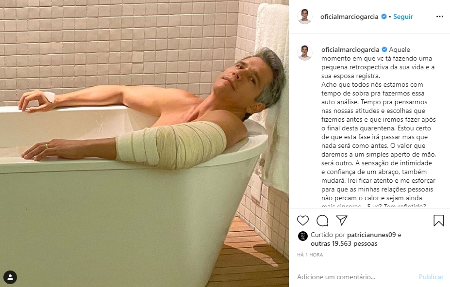 Em seu desabafo, ele falou sobre o novo mundo que está por vir e a insegurança que nos espera: “Estou certo de que esta fase irá passar, mas que nada será como antes. O valor que daremos a um simples aperto de mão, será outro. A sensação de intimidade e confiança de um abraço, também mudará. Irei ficar atento e me esforçar para que as minhas relações pessoais não percam o calor e sejam ainda mais sinceras… E você? Tem refletido?.. Boa noite! Boa semana!”, escreveu.