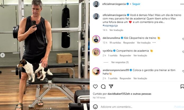 Através do feed no Instagram, Márcio Garcia compartilhou diversos cliques na academia, logo mostrando que seu fiel parceiro de vida estava presente no local. “Você é demais Max! Mais um dia de treino com meu parceiro fiel de academia! Quem tbem acha o Max uma fofura deixa um ❤️ e um comentário pra ele…“, publicou o apresentador e ator, encantando seus fãs.