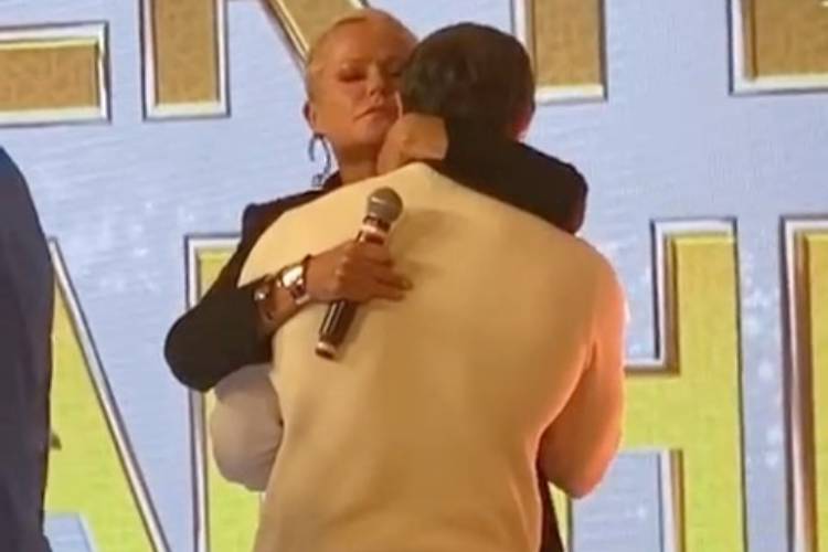 Ao receber o presente ele não não escondeu a emoção e chorou muito e precisou de um tempo para se recuperar. Xuxa, ao ver o quão abalado o apresentador estava, saiu do seu lugar e foi dar um abraço no amigo, como forma de consolá-lo. No Instagram, Mion mostrou um vídeo que recebeu desse momento e aproveitou para agradece-la, pelo gesto de carinho.