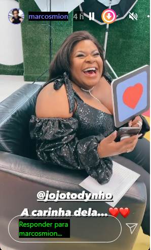 Jojo ficou muito feliz ao ver o apresentador e foi abrindo um grande sorriso. “Meu Deus eu vou chorar, que saudades de você! Eu amo você”, disse ela, que se levantou da cadeira e deu um forte abraço em Mion.