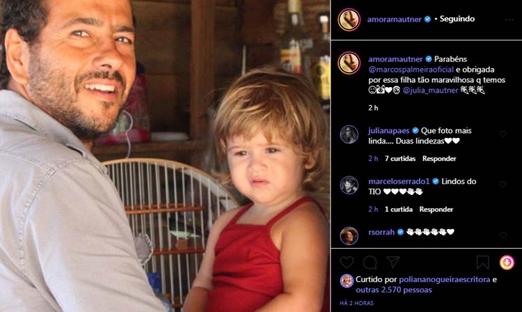 Em seu perfil no Instagram, a diretora da Globo publicou uma foto do ator com a filha ainda pequena. “Parabéns @marcospalmeiraoficial e obrigada por essa filha tão maravilhosa q temos ❤ @julia_mautner!, escreveu na legenda.