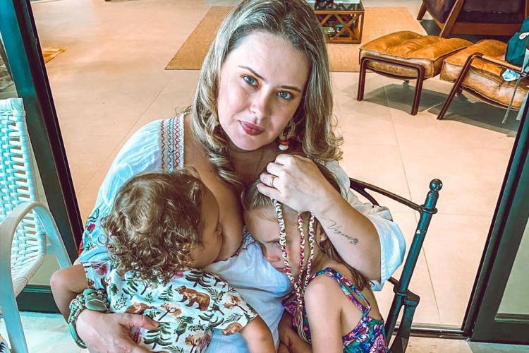 Ela ainda falou sobre a foto com os filhos: “P.S: mãe de dois é assim, um querendo mamar e outra triste querendo colo! E colo de mãe cabe todo mundo!”, finalizou.