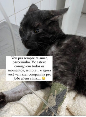 Maria Lina está sofrendo a morte de seu gato de estimação. A estudante de Engenharia Civil, compartilhou uma foto do animalzinho, recebendo medicação na veia, e aproveitou para se despedir do pet com uma linda declaração.