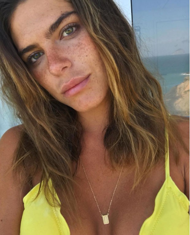 Mariana Goldfarb mostrou o bronzeado em dia e as sardinhas no rosto em um clique compartilhado no Instagram. De biquíni amarelo e cabelos soltos, a namorada de Cauã Reymond usava ainda um escapulário no pescoço.
