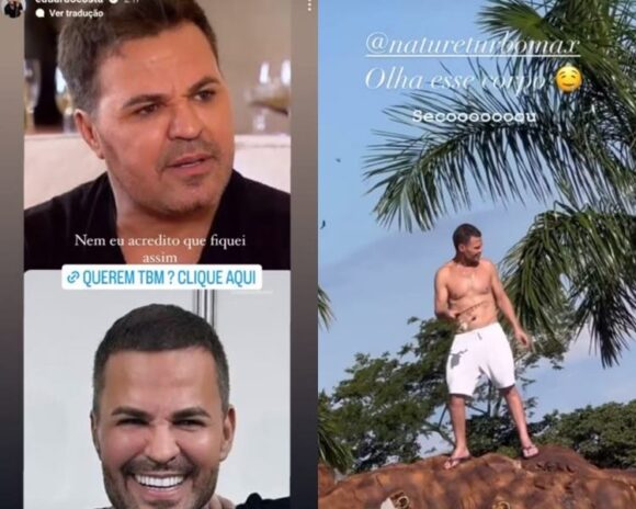 Nos Stories, o sertanejo ainda postou um antes e depois e se surpreendeu com a mudança radical em seu rosto. “Nem eu acredito que fiquei assim. Minha vida mudou aqui“, escreveu ele.