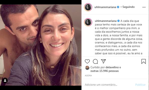 Mariana publicou uma foto ao lado do amado em seu perfil no Instagram. “A cada dia que passa tenho mais certeza de que você é o melhor companheiro pra mim, a cada dia escolhemos juntos a nossa vida a dois, a nossa família, e por mais que a gente discorde de alguma coisa, oramos, e dialogamos.. a cada dia nos conhecemos mais, a cada dia somos mais profundos um no outro, sem saber que isso é possível..”, escreveu.