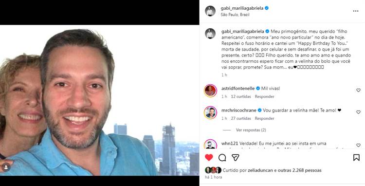 Os seguidores da jornalista também reagiram. “Suas declarações de amor sempre lindas e até inspiradoras”, afirmou um. “Te adoro, Gabi. E parabéns para teu filho”, desejou outro. “Lindos ! Parabéns ! Feliz Aniversário e novo ciclo de muito amor, paz, saúde e realizações para ele hoje e sempre ! Viva o seu dia”, escreveu mais um.