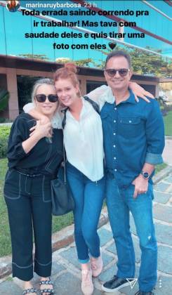 A atriz Marina Ruy Barbosa publicou nesta quinta-feira (30), uma foto rara onde aparece ao lado dos pais, Gioconda e Paulo. Na ocasião, a artista aparece sem maquiagem, surpreendendo os seus seguidores.