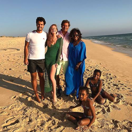 As duas globais posaram em clima de intimidade em uma praia da Europa. Primeiro, a ruiva compartilhou uma foto com o amado, Gloria, as duas filhas da apresentadora e um amigo.