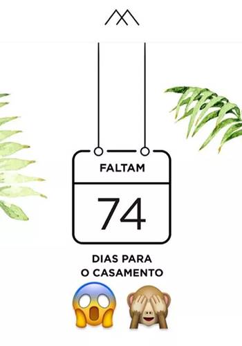 Marina Ruy Barbosa já está na contagem regressiva para seu casamento com Xandinho Negrão! A ruiva publicou uma foto em seu Instagram Stories na manhã desta quarta-feira (26) e se mostrou ansiosa para o grande dia, marcado para 7 de outubro.