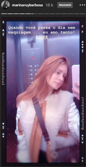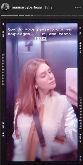 Marina Ruy Barbosa, mais uma vez, deixou os fãs impressionados ao postar um stories em seu Instagram, onde aparece de ”cara lavada”. A atriz estava saindo de casa, quando decidiu postar dentro do elevador, uma foto onde aparece sem maquiagem.