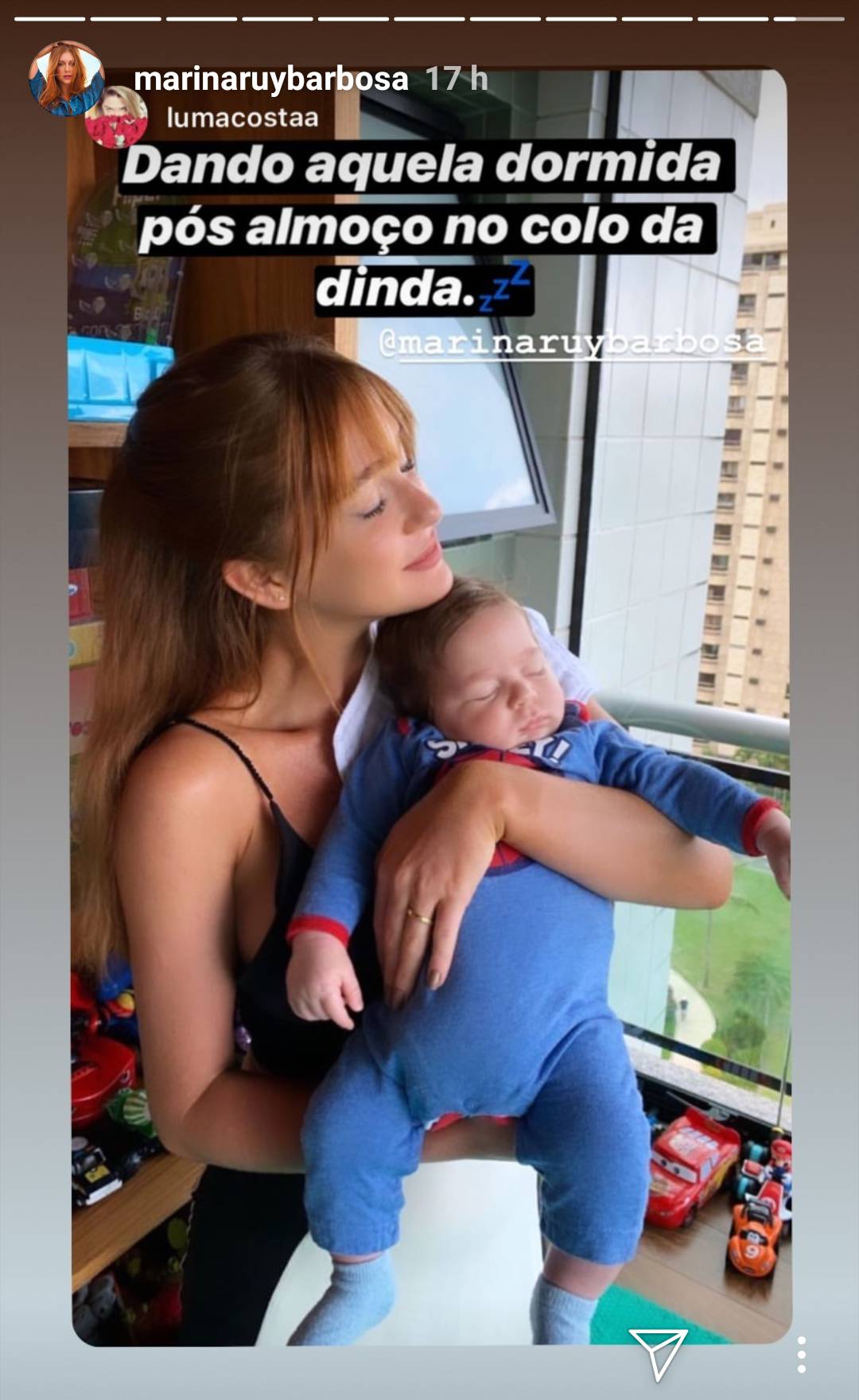 No Stories do Instagram, Luma compartilhou o registro da visita, e Marina aparece colocadinho com o afilhado. “Dando aquela dormidinha no colo da dinda”, escreveu ela.
