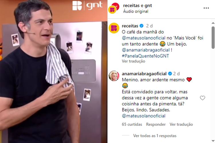 Ana Maria, claro, entrou na brincadeira. Ao ver a história sendo compartilhada pelo GNT no Instagram, ela respondeu com o mesmo tom leve e divertido e ainda convidou o ator para retornar ao seu programa, mas dessa vez, para lhe servir algo antes de oferecer o prato apimentado.