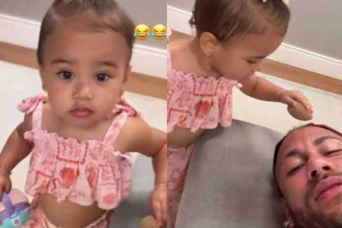Neymar apareceu em um registro fofo se divertindo com a filha, Mavie, fruto do seu relacionamento com Bruna Biancardi. O jogador surge sendo maquiado pela pequena, pedindo ainda para ela mostrar o seu look.