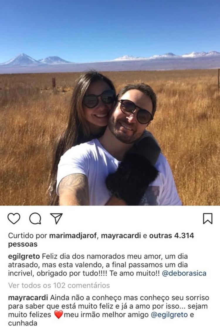 Acontece que o seu ex, em sua rede social, publicou uma foto onde ele aparece ao lado da sua nova namorada. Na legenda ele escreveu: “Feliz Dia dos Namorados, meu amor, um dia atrasado, mas está valendo. Afinal, passamos um dia incrível, obrigado por tudo!!!! Te amo muito!!”.