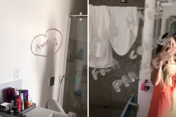 Mayra, usou a ferramenta stories de seu Instagram, para compartilhar aos seguidores o que faz para manter a chama da paixão sempre acesa. A personal coach troca bilhetinhos apaixonados através do espelho.