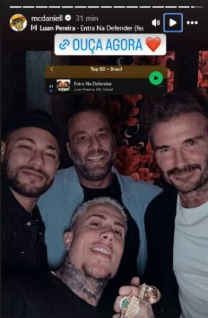 Na tarde desta quinta-feira, 28 de março, MC Daniel surpreendeu seus seguidores ao compartilhar uma foto ao lado de ninguém menos que Neymar Jr, jogador de futebol, e David Beckham, ex-atleta e empresário, em Miami, nos Estados Unidos.