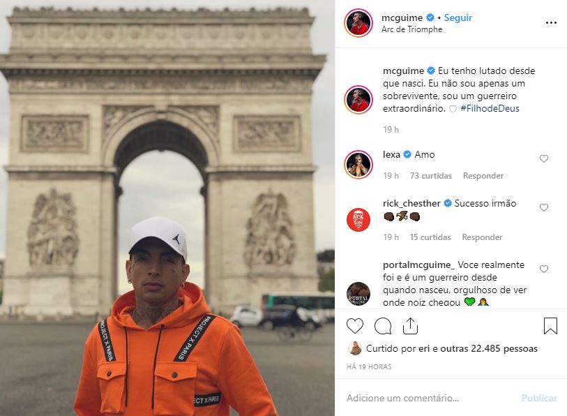 Depois o cantor foi turistar pela capital francesa e tirou um click em frente ao Arco do Triunfo um dos mais famosos pontos turísticos da cidade. Nas redes sociais, o marido de Lexa compartilhou o registro e na legenda aproveitou para fazer um desabafo. Ele vale lembrar, foi detido após ser pego portando drogas.