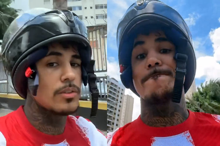 Sem saber, Livinho aparece de capacete e começa a tentar chamar a atenção da repórter. “Mãe, ó a Globo!”, diz o cantor, recebendo a recusa da profissional. “Deixa eu participar dessa entrevista aí, moça?”, pergunta. “É um acidente”, responde a repórter e o cinegrafista, apontando para o chão.