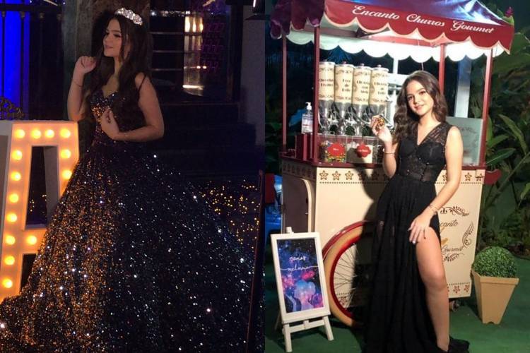 “Para valsa, será um vestido bem galáxio, que é a temética da festa galáxia. Depois vou usar um vestidinho menor, mais curto, coladinho, bem soltinho. Ele é bem bonito, mas é bem mais à vontade. Tem que ser uma roupa que fique bonita, mas também confortável para eu dançar”.