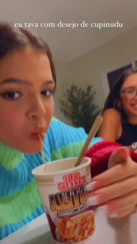 Paralelamente, a atriz, que interpreta Guiga em Vai na Fé, compartilhou um vídeo casual em suas redes sociais na noite da última terça-feira (18). Na gravação, a influenciadora digital mostrou aos seguidores o prato escolhido para o jantar: um macarrão instantâneo. Segundo ela, além de ser fácil de preparar, tinha vontade de comer esse prato há algum tempo. “Eu tava com desejo de ‘cupinudu'”, afirmou ela, referindo-se à marca do alimento.