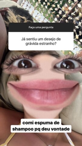 “Já sentiu um desejo de grávida estranho?”, foi o questionamento de uma pessoa. Nesse momento, Anna Livya Padilha não apenas assumiu a vontade de beber espuma de shampoo, como também confessou que o desejo foi satisfeito. “Comi espuma de shampoo porque deu vontade”, disse ela.