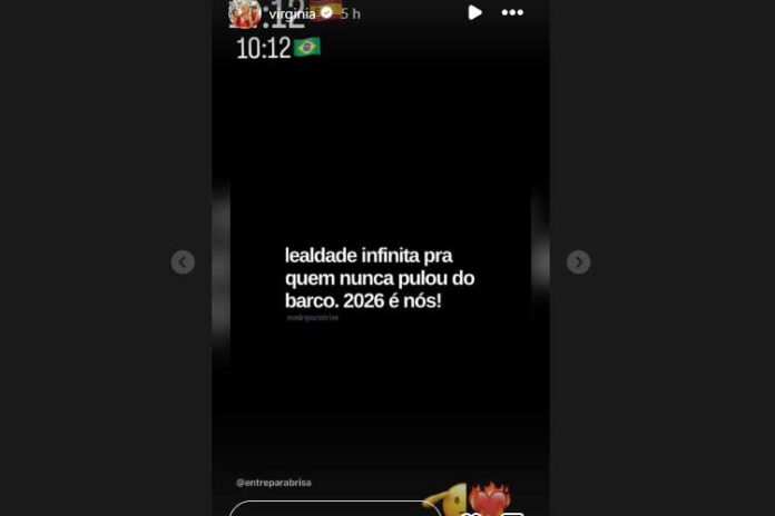 “Lealdade infinita para quem nunca pulou do barco. 2026 é nós!”, diz o texto da mensagem compartilhada pela apresentadora do “Sabadou” em seu Stories nas redes sociais. A influenciadora passou a virada de ano ao lado do namorado, Vini Jr, e de amigos, familiares e os filhos: Maria Alice, Maria Flor e José Leonardo. Além de somar milhões de seguidores, Virginia também apresenta o seu próprio programa no SBT e é empresária.