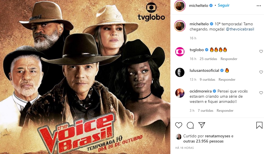 “10ª temporada! Tamo chegando, moçada! @thevoicebrasil”, escreveu o cantor que é super campeão da atração.