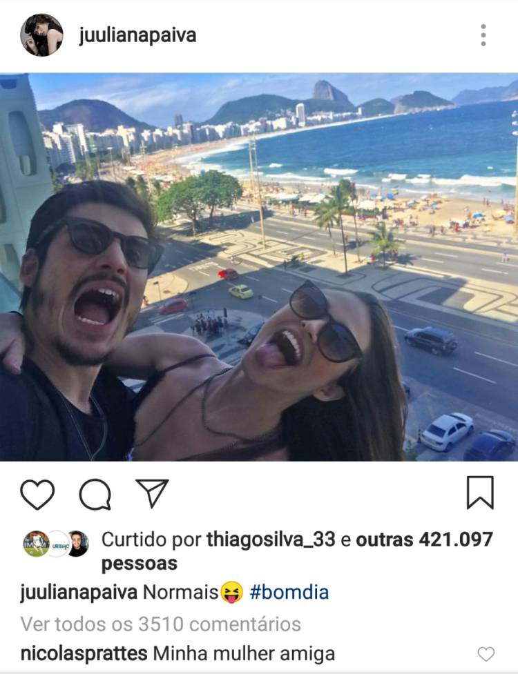 Juliana Paiva publicou uma foto ao lado do ator Nicolas Prattes, na manhã desta quinta-feira (13).