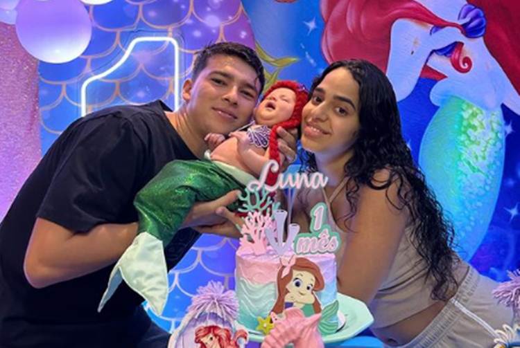 No Instagram, Mirella e Gabriel publicaram alguns cliques da celebração, que teve como tema ‘A Pequena Sereia’. Luna, aliás, ganhou uma roupinha da personagem central do filme da Disney. “1 mês da Sereia Luna”, escreveu Gabriel. “A pequena sereia de mamãe”, se derreteu Mirella.