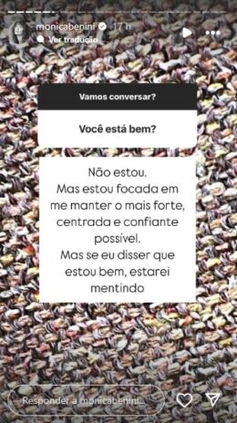 Sobre o apoio dos seguidores, Benini pediu: “E eu também confesso que quero muito contar com a ajuda de vocês em uma coisa. Vocês podem imaginar como eu acordo e durmo nesse tema. Minha vida está totalmente monotemática. E eu quero muito que a gente aqui consiga, sabe aquele lugar que você entra para falar de outros assuntos, para espairecer, para continuar fazendo o meu conteúdo, falar das coisas que a gente gosta, das coisas bonitas, das coisas que transformam a vida e eu sei que a gente pode estar junto nessa“, finalizou.