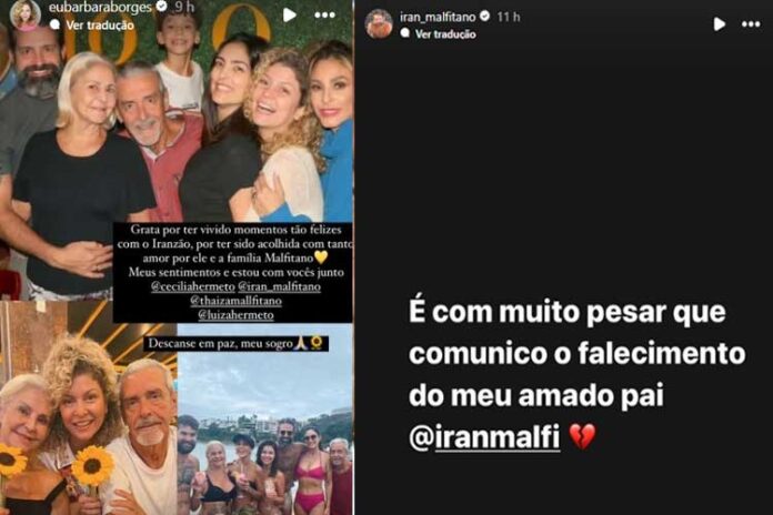 A campeã de “A Fazenda 14” também lamentou a morte do sogro nas redes sociais, reunindo registros especiais vividos ao seu lado. “Grata por ter vivido momentos tão felizes com o Iranzão, por ter sido acolhida com tanto amor por ele e a família Malfitano. Meus sentimentos e estou com vocês. Descanse em paz, meu sogro”, disse a atriz.