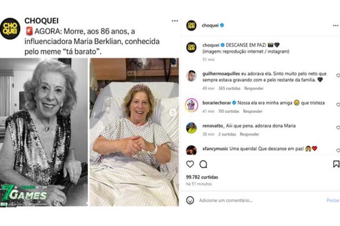 Maria Berklian ficou conhecida como “Rainha do Brasil” após conquistar milhares de seguidores no Tik Tok com o meme “tá barato”. Infelizmente, ela faleceu aos 86 anos. A informações foi divulgada através das redes sociais nesta segunda-feira (11).
