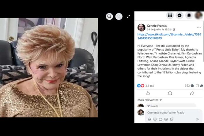 A cantora americana Connie Francis morreu, aos 87 anos, nesta quarta-feira (17). Conhecida por ser a voz da canção “Pretty Little Baby” e de “Stupid Cupid”, versão original de “Estúpido Cupido”, a causa da morte da estrela não foi divulgada.