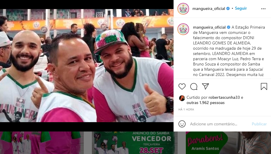 A agremiação soltou um comunicado lamentando o ocorrido: “Desejamos muita luz para que ele siga sua caminhada e aos familiares, parceiros e amigos. Desejamos muita força e fé, com a certeza de que ele permanecerá sempre presente em seus corações”, disse a escola.