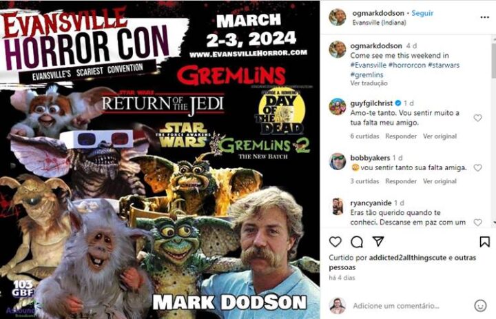 Em suma, Dodson se tornou conhecido mundialmente após ser a voz de Salacious Crumb, a pequena criatura que aparecia ao lado de Jabba em ‘Star Wars: O Retorno de Jedi’. O artista ainda ganhou destaque ao participar de ‘Gremlins’, como a voz de Mogwai. Mark também trabalhou em outros filmes, videogames, rádio e comerciais.