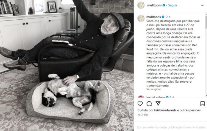 Martin Mill teve sua morte anunciada por sua filha, Maggie, através do Instagram, na noite da última sexta-feira, 28 de junho. Na publicação, ela não citou a causa, mas destacou que se deu “após uma valente luta contra uma longa doença”. “Ele nunca foi sem graça. Meu pai terá sua falta sentida profundamente por sua mulher, filha, amigos, colegas, artistas, humoristas e músicos e muitos, muitos cães.”