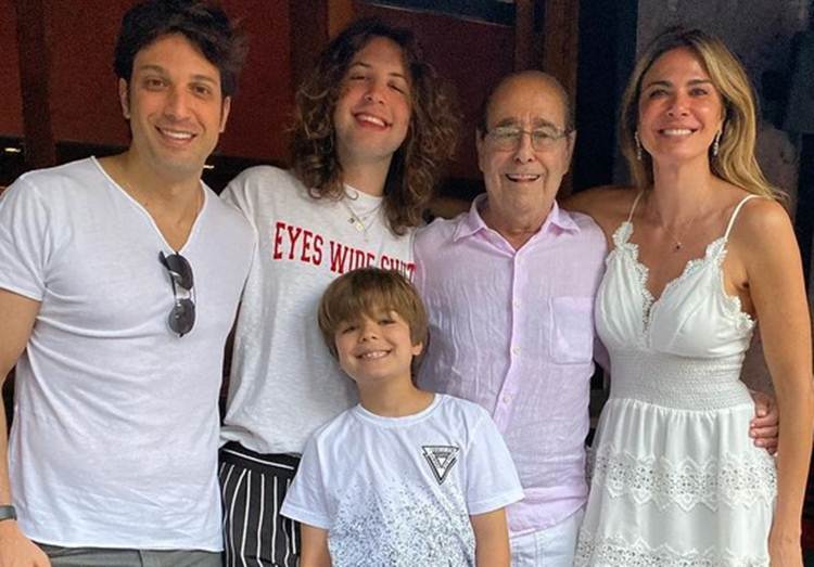 Em junho deste ano, a artista compartilhou um clique raro com os filhos, Lucas e Lorenzo, e o irmão ao lado do pai. “A foto está meio torta, mas meus meninos estão lindos. Foto raríssima com meu pai”, legendou ela na ocasião.