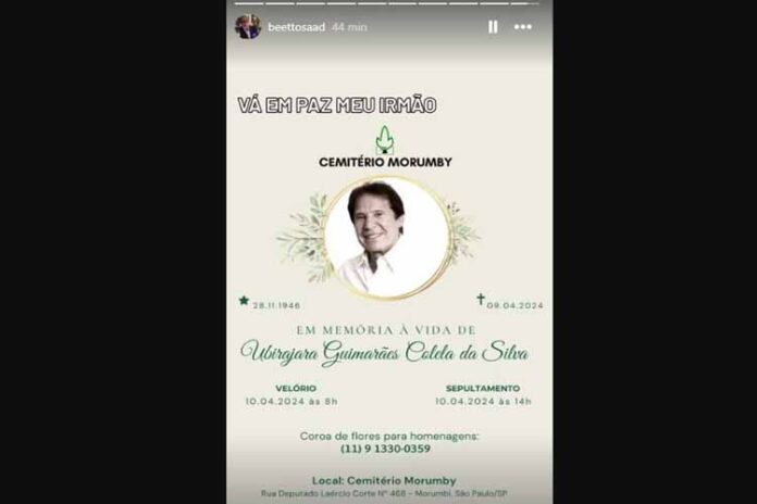 “Vá em paz, meu irmão”, disse Beeto, sem divulgar maiores detalhes sobre a causa da morte. O corpo de Ubirajara será velado e sepultado no Cemitério Morumby, em São Paulo, nesta terça.