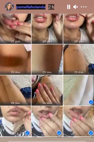 Em outro post, Pamella ainda mostra várias imagens dos lábios feridos depois das agressões de DJ Ivis.