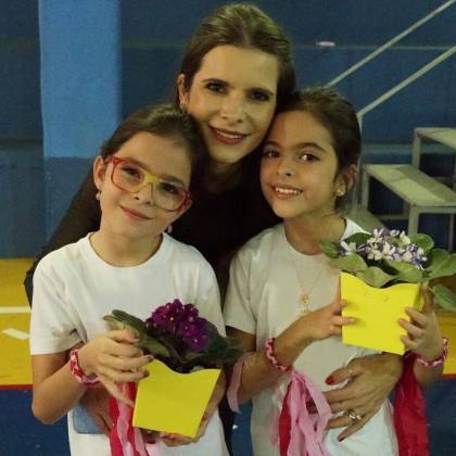 Flávia publicou um seu Instagram uma linda foto em que aparece com as suas filhas, que seguram um vaso de flores, cada uma. Na legenda, ela revelou que há 9 anos ela se emociona com as homenagens.